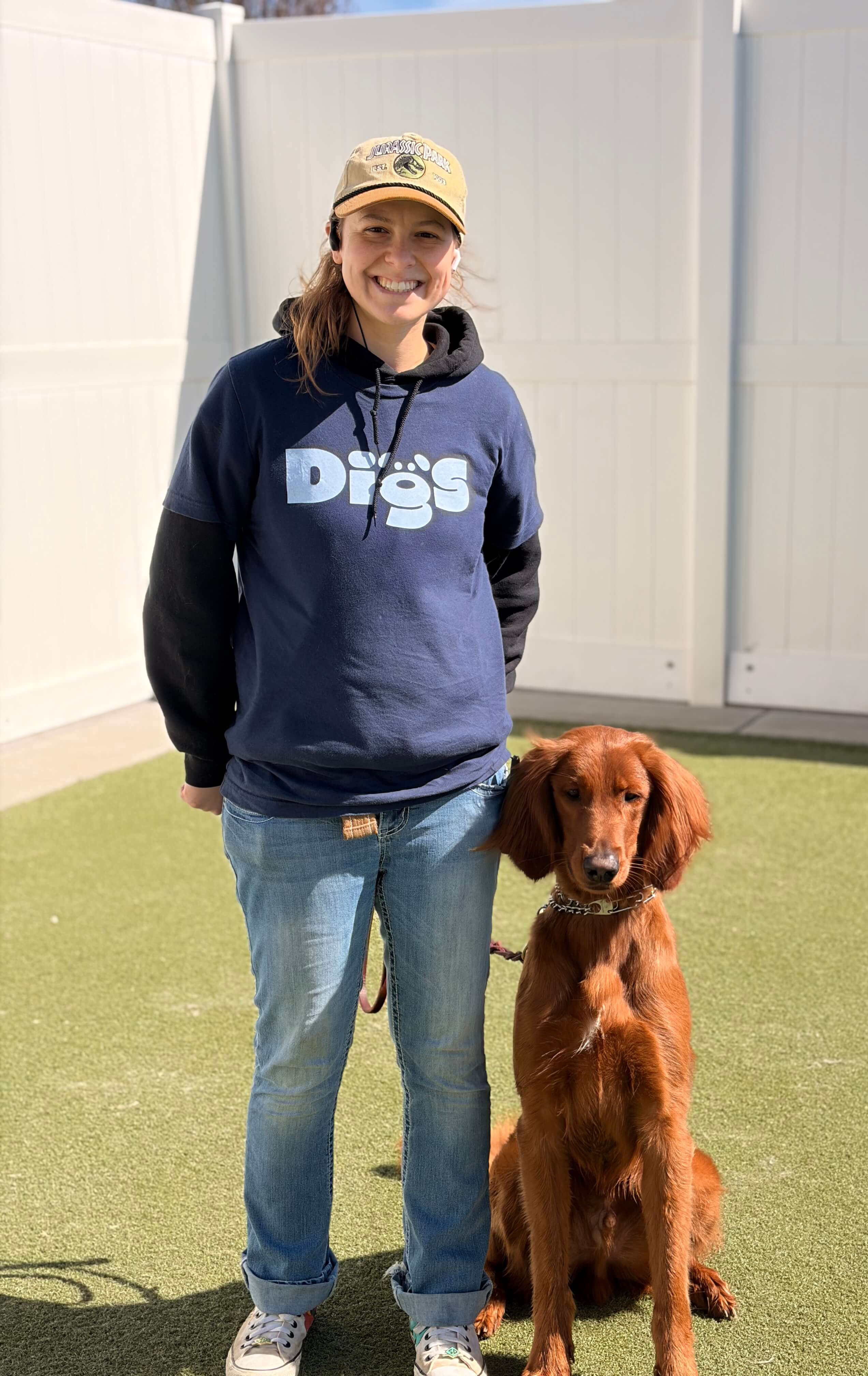 Cassidy has been part of the Digs Manhattan team since the facility opened in 2017. With nearly a decade of experience working with dogs and families in our community, she has served as our onsite trainer, helping pups build strong manners and basic obedience alongside their daycare experience. She recently completed advanced, hands-on development where she spent four weeks working with real dogs in real-world situations and learning from mentors who have collectively trained over 10,000 dogs, including AKC Certified Evaluators.